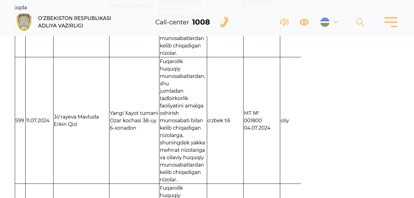 Biz butun O'zbekiston bo'ylab, hatto Rossiya, Turkiya va boshqa davlatlarda ham sizga yuridik yordam bera olamiz